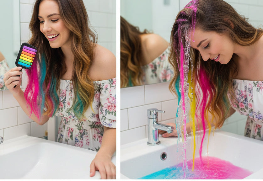 El color es temporal y dura hasta el próximo lavado. Perfecto para fiestas, disfraces o cambiar de look sin compromiso.